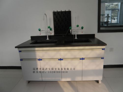 理化板台面,耐酸碱、耐腐蚀。台面外沿倒角、加双层沿厚25.4mm。箱体、抽屉板均采用1.0mm厚冷扎