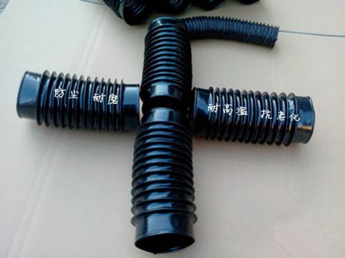 一种是钢圈支撑的丝杠防护罩,此种护罩采用多种面料,内有坚硬的钢丝圈支撑、能在高温110℃、低温-40℃之间正常工作。可有效的防尘、防水、防油、防乳剂和化学药品,此护罩具有外形工整,不易变形的特点,基于它的严密,坚挺,此护罩且可用于众多机械的通风、除尘等。本产品的灵活不但在材料可选,更在于它可以根据的具体要求来确定所需直径和长度。