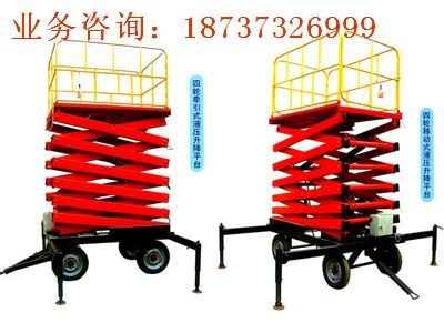 移动式升降平台、二轮牵引式升降平台、汽车改装式升降平台、手推式升降平台、手摇式升降平台、交直流两用升降平台、电瓶车载式升降平台、 起升高度从1米至30米不等.