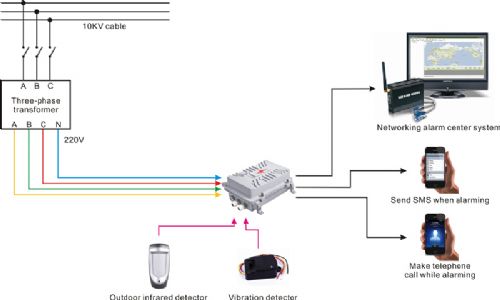 变压器等供电设备和线路的防剪断、防盗窃、防破坏。主机采用全密封铝压铸外壳,防水性能好,具有功能实用、质量优良、工作稳定可靠等特点,适应野外各种环境使用,广泛应用于电力、石油、矿山等所有在户外工作的