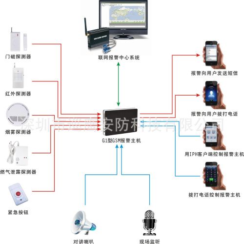 可事先设置3组接收报警短信和3组接收电话的号码,报警时自动向设置好的电话号码发送报警短信或拨打电话。