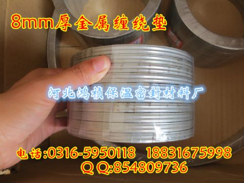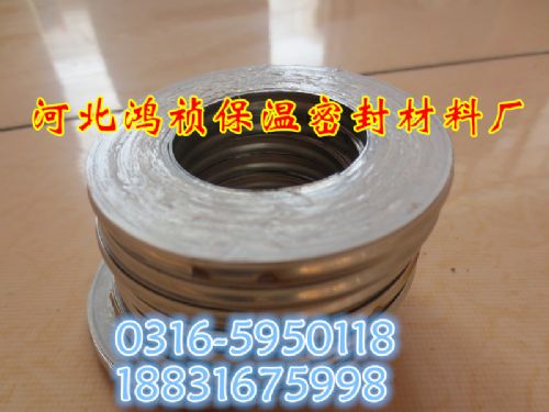 聚四氟乙烯、无石棉等柔性材料相互重迭螺旋缠绕,并在开始及末端用点焊方式将金属带固定而成。