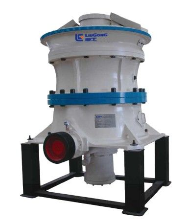 破碎机主要由机架、定锥总成、动锥总成、弹簧机构、碗型轴架部、传动、电气系统、稀油润滑系统以及液压清腔系统等组成。其中,定锥总成主要有调整套、轧臼壁等组成,动锥总成主要由主轴、动锥体、破碎壁等组成,传动部分主要由大带轮、传动轴、小锥