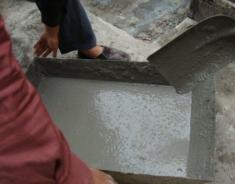 ⑷将拌和均匀的灌浆料灌入模板中并适当敲击模板。
