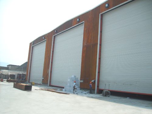 门体特点:抗风卷帘门中抗风导轨安装于门洞两侧,卷帘夹在两导轨中间,传动轴安