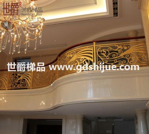 佛山工厂电镀镜面K金色铜雕花围栏设计新颖