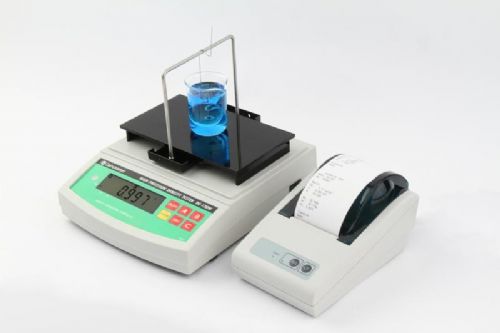 密度计,精度达万分之一,应用于品质管理中精度要求高、化工材料研究、配方研制等领域。采用独得的无记忆式动态测量法,无需按键,即瞬间显示密度值;可通过上下限的设定,自动判别密度合格与否,并警报提示;具有3组模式的密度测量功能,测不同液体时,可直接更换砝码无需重新设定;具有波美度测量功能;测量精度更高、操作更快速、适合连续多次测试的场合。