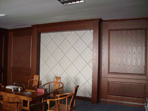 高档成品木饰面大量应用于星级酒店、高级写字楼、会所、会议中心等高级商业建筑。其优点在于:大幅提高装修质量、提升装修的品位、施工周期大大缩、容易控制成本、实现了环保要求。