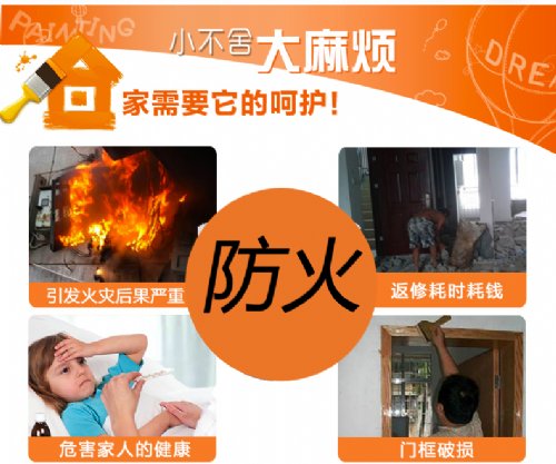 防火涂料,由多种高效阻燃材料和高强度的成膜物质组成,该涂料遇火后迅速软化、膨胀、发泡,形成致密的蜂窝状隔热层,具有较强的阻火隔热功能,对基材起到很好的保护作用。同时,该涂料又具有很强的附着力和一定的抗潮、防水、耐酸碱和耐冻融等特性。并可根据用户需要调配多种颜色,具有良好的装饰效果,施工简便。符合GB12441-2005要求,防火性能达到一级标准。 该涂料适用于