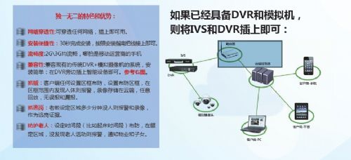 3) 我方产品特色:即插即用,30秒即可安装完成,移动2G网络下也可流畅播放;可设置局部区域分析(防止误报);正向人体闯入报警中融入了多种算法,能屏蔽环境(比如动物、光线等影响),准确识别是否人的形状、高度、大小、是否具备脸庞特征、移动速度等,综合多种因素精准分析,100%无漏报误报;