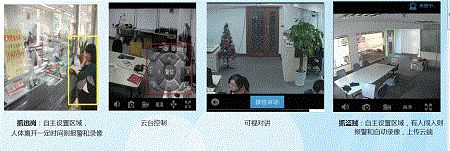 1) 功能:云播放、云报警录像存储。IVS设备智能分析视频流,根据客户端的设置完成100%精准的人体闯入报警和无人活动报警,报警录像上传云平台,任意回放。举例:通过客户端可在画面的局部局域用手指绘制一个区框,让系统则只关注区框内的画面(防止误报),可设置在一定的时间段区框内有人则报警,也可以设置在一定的时间段内,区框多少分钟(都可灵活设置)内没出现人则报警。