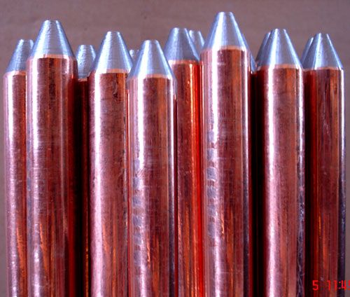 铜材料,节省成本,导电性相同,并含有铜的硬度。铜镀钢接地棒主要用于防雷接地方面,可降低阻值,当楼顶