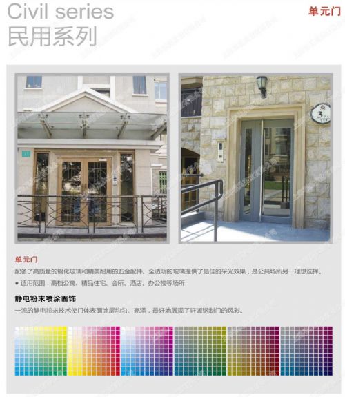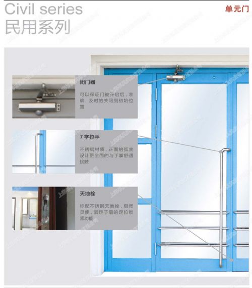 精巧美观、时尚大方、不会变形、坚固耐用、安装方便等特点。适合于高级中西餐厅、高档娱乐场所、写字楼、购物中心、连锁专卖店、运动场馆、企事业单位、工厂办公等高频率使用场所。我们可以按客户实际需求设计加工不同的外观、尺寸、颜色的门,亦可提供上门安装服务。