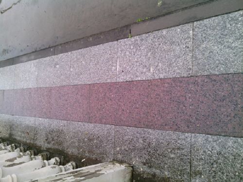 是红色花岗岩的典范,质地坚硬,色差小,红底黑花主基调外加浅蓝色石英偶有绿点如晨星点缀,平添一种贵族气息,被广泛应用于大楼外墙干挂与高档建筑内的阶梯踏板、构件、