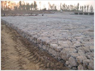 5、石笼网兜是由单层网片卷制而成。其网眼,网丝,镀锌及 PVC 覆膜属性与网箱相同。本产品可将形状各异、大小不一的的块石装入合金网兜形成一个柔韧的整体,可以通过吊装、汽车、船运到达*地方,将合金网兜相互连接成一个更大整体,施工抛投时方便、快捷、高效,经济性能好。