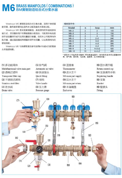 适用于地板辐射采暖,散热器采暖和生活热水分配及自来水系统分配。