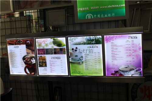 奶茶灯箱的安装方式分为三种:背墙安装、桌面安装、吊挂安装。
