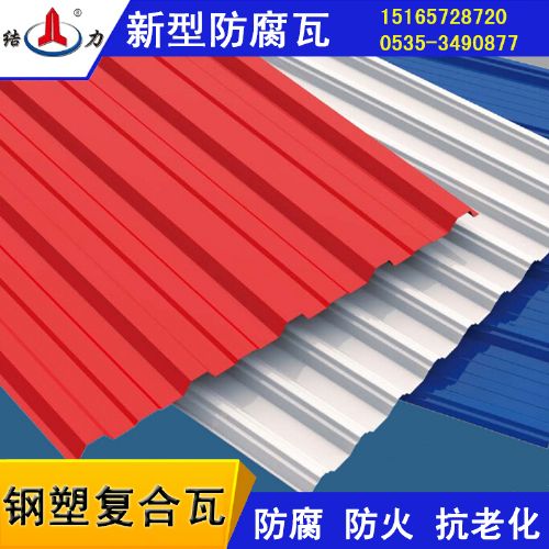 压型瓦表面易老化褪色的缺憾.并且钢塑瓦的双面树脂层能非常有效的组织酸碱盐和化学品的腐蚀,在这种腐蚀环境下使用寿命达到25-35年。钢塑瓦的价格由其本身的规格、材质、厚度而决定,网上价格仅供参考。结力钢塑瓦规格上百种,现可根据客户的不同需求进行定制,全国直销。欢迎来电洽谈 0535-3490 877 1358977 2720秦经理