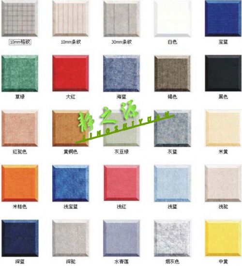 马赛克状)、宽条、细条。板材可弯成曲面形状,可使室内体形设计更加灵活多变,富有装饰效果。甚至可以将装饰艺术画通过电脑复印在聚酯纤维吸声板上。