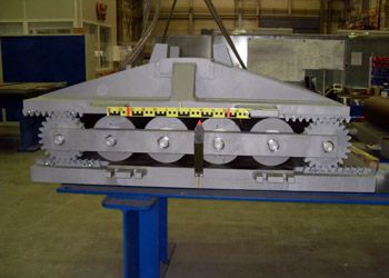 、底板等部件组成。辊轴是实现支座移动功能的部件 ,为了防止其倾倒 ,在两边辊轴上设有牙板 ,插入下摆和底板的槽口内 ,可以随辊轴一起转动。在辊轴上设有 2块上、下连接板 ,通过
