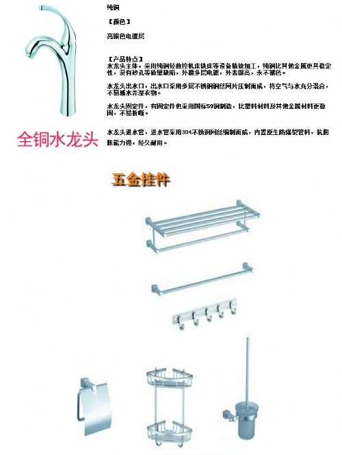 铜材,符合国家含铅标准,不会对人体造成伤害,不会对水质造成污染,保证您的健康。先进的铸造工艺使铜材组织更紧凑,杜绝沙眼造成渗漏,表面多层电镀,**光亮,龙头可进行360度全方位旋转,不占用浴室内部过多空间。