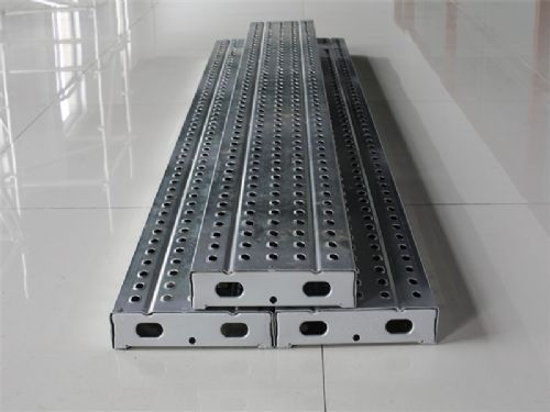 防滑性更好,每张钢跳板上面都有凸孔带翻边防滑设计,木跳板和竹跳板是无法做防滑处理的