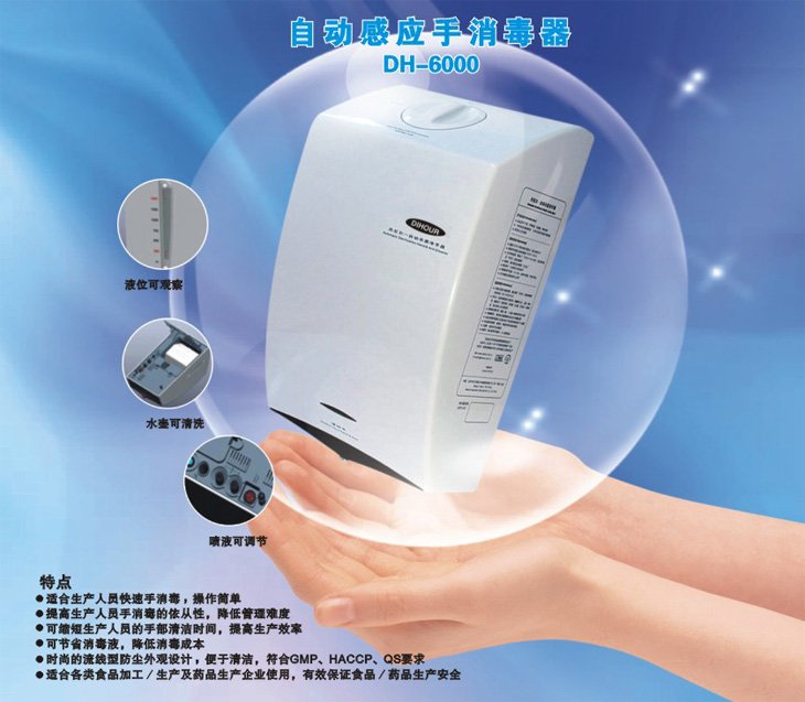 1.红外线感应控制,自动喷液杀菌. 本机可与洁净门进行连接.