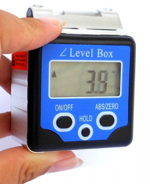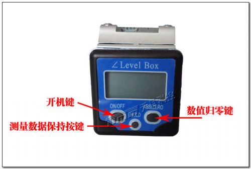 3、将仪器置于水平台上,轻按ZERO键,数值归零,液晶显示0.0°此时测得的角度值是相对水平台的角度值;