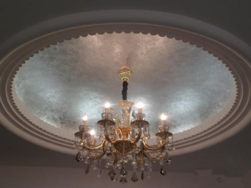 雕塑贴银、豪华别墅贴银、家私贴银(家具贴银)、仿古建筑装饰工程贴金及彩绘等业务;用于高档装饰工程贴金中的皱褶、裂纹、仿古、做旧、肌理 、碎银、堆银、花彩等多种特殊贴金效果的加工业务;用于大型板式或画布式手绘金银装饰