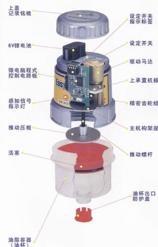 是一项设计精良的自动润滑器产品,每一个产品都配置有独立的「预警系统」,提供预警的功能。这项功能对于保养维护人员是非常地重要,假如发生异常「无法正常注脂」时,它会发出「闪烁的灯号」信息,预先警告保养维护人员,于事先防范实时处理问题,使润滑器保持在正常的工作状态下,确保机械设备正常的