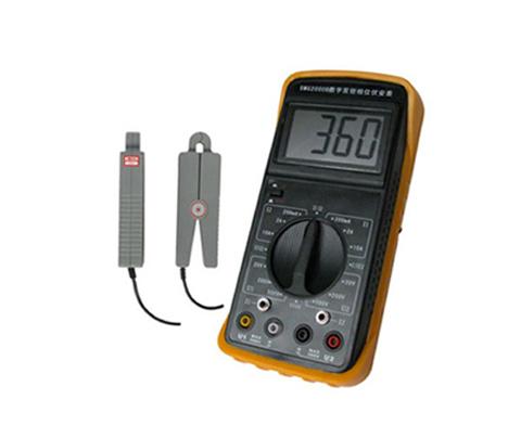 SMG2000B数字双钳相位伏安表是专为现场测量电压、电流及相位而设计的一种高精度、低价位、便携手持式、双通道输入测量仪器。用该表可以很方便地在现场测量U-U、I-I及U-I之间的相位,判别感性、容性电路及三相电压的相序,检测