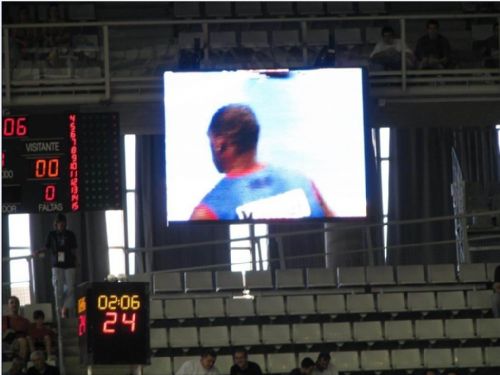主要应用于体育比赛现场直播,播放运功员信息,比赛状况,计时、记分等;其特点除具有户内外固定安装显示屏的特征外,主要配备体育比赛系统,如裁判系统、播控系统、24秒倒计时及声控光闪系统、计分
