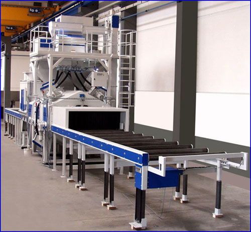 。并配置4把自动吹净枪1把手动吹净枪。在喷砂加工时,工人只进行上下工件的操作,喷砂、输送等工作由