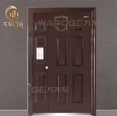 挤压而成,门板全部为钢板,钢板厚度多为1.5毫米和1.2毫米,耐冲击力强。门扇双层钢板内填充岩棉保温