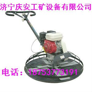 它的主要结构是一个汽油机驱动的抹刀转子,在转子中部的十字架底面装有10片抹刀。抹刀倾斜方向与转子旋转方向一致,由汽油机带动三角皮带使抹刀转子旋转。操作时,先打着火,握住操纵手柄,两个一起往前推是往前移动,一起往后拉是往后移动。平均每小时能做100~300m2,与人工抹光比较可提高工效30倍以上。