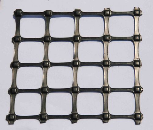 的外观近似正方形的网络状结构,它是用聚丙烯为主要原材料,通过挤出、然后再纵向、横向拉伸形成的一种高强度土工材料。