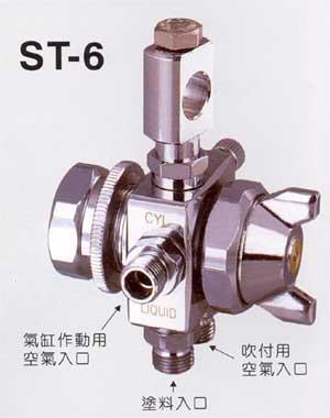 ST-6系列的自動噴槍與ST-5系列相同,噴槍內部同樣具有一個氣動式活塞機構,用來控制液體的開或關,但是ST-5系列的自動噴槍其『活塞作動用空氣』與『霧化用空氣』乃是共同的,空氣壓力比須大於2kg/cm2,噴槍才能正常運作。