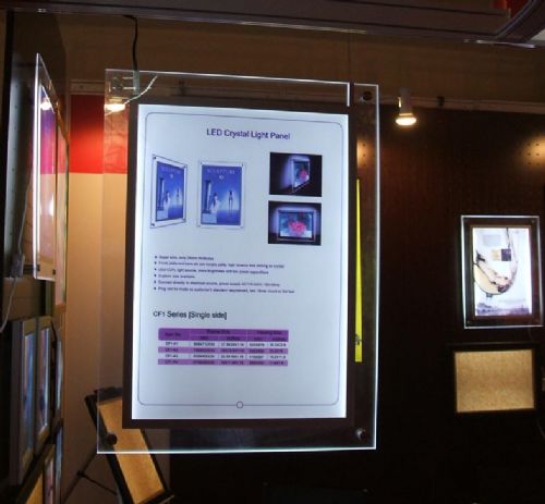 亚克力原料生产,无光照时完全透明,光照时通体发光。产品寿命长,稳定好,亮度高,匀度好,可任意裁切,是制作无边框LED水晶