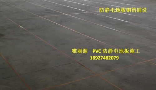 ⑥贴设铜箔: 在地面上按规定的尺寸粘贴铜箔条形成网络;