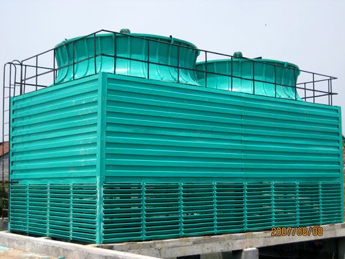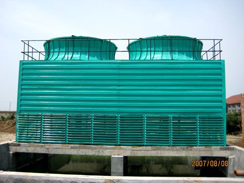 (7)吸声设施:超低噪声型冷却塔在上塔体出风口上面安装了带吸声材料的屏蔽及吸声栅,降低了风机及电机的噪声。对于小塔设蘑菇型吸声栅。