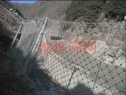 网为主的各类柔性网覆盖包裹在所需防护斜坡或岩石上,以限制坡面岩石土体的风化剥落或破坏以及为岩崩塌(加固作用),或将落石控制于一定范围内运动(围护作用)。