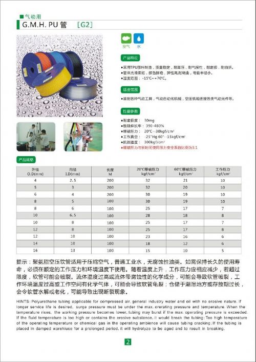 采用新PU料加工而成.颜色鲜艳,光泽度高,表面光滑手感非常好.耐高压且耐低寒.是气动行业,和机械自动化的*佳配管.
