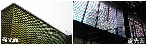 >单向透视效果,弱光面看强光可透视。看强光面为金黄色奇幻外观,无法透视。