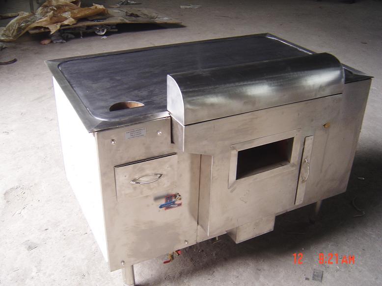 合金钢,厚度为25mm。本公司经过反复研究,已经改良了烧烤过程中台面因受热不均而易变形的现象,实现了不曲翘,不变形,不变色的良好效果。