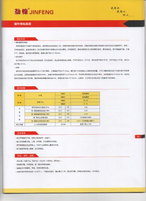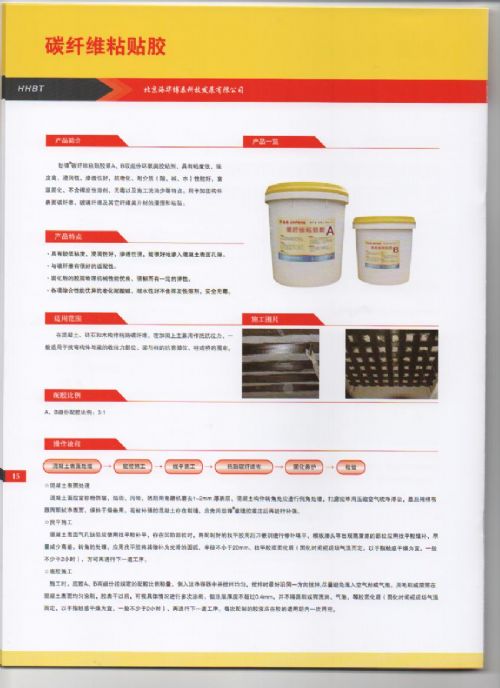 ,具有粘度低、强度高、浸润性、渗透性好,抗老化耐介质(酸、碱、水)性能好,室温固化、不含挥发性溶剂、*以及施工流淌少等特点。用于加固构件表面 碳纤维、