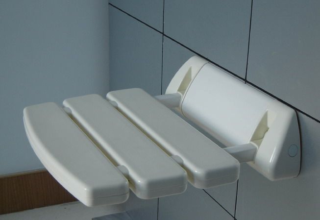 淋浴房侧面,安装于浴室承重墙上,可承重130公斤,相当于两个普通人的重量,隔热性好,坐在上面不会有凉的感觉。椅子为天蓝、淡黄、桔红和白色,耐腐蚀,不变色。使用时,将其放平,不用时,可折叠起来贴于墙面上,不占面积。适用于老年人、孩子、行动不便人士和体虚者坐在上面洗浴,享受舒适的沐浴乐趣。是家居装饰实用的代表性产品