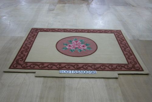多以纯羊毛和真丝为材料,前后经过图案设计,配色,染纱,上经,手工打结,平毯,片毯,洗毯,投剪,修整等十几道工序加工制作而成。