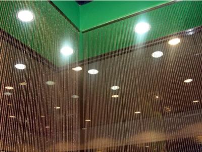 可被应用于大尺寸的隔断或正面装饰,亦可小面积的局部装点。其天然金属色泽随着光线的不同变化与灯光产生的反射作用,透过金属网,形成一个隔而不断的整体空间,给人以视觉上的开阔感。