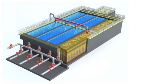 过滤器底部注入反冲洗水,历时数秒钟。该过程可加速滤池中氮气的释放,减少水头损失,提高系统效率,延长反冲洗周期。过程简单易行。通常,反硝化/过滤系统在进行必要的逆洗前,可以进行4-5次氮气的释放, 逆洗频率及时间的选择主要取决于NO3-N的分解量。