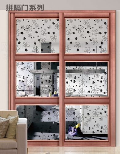 本产品适用于厨房、隔断,设计的特色在中式的型材配带其现代的转换边,衬托出产品的高贵大方,同时打三横正如婀娜多姿的女子在翩翩起舞,玻璃采用现在的车刻工艺,更加显示其产品的高贵和典雅。